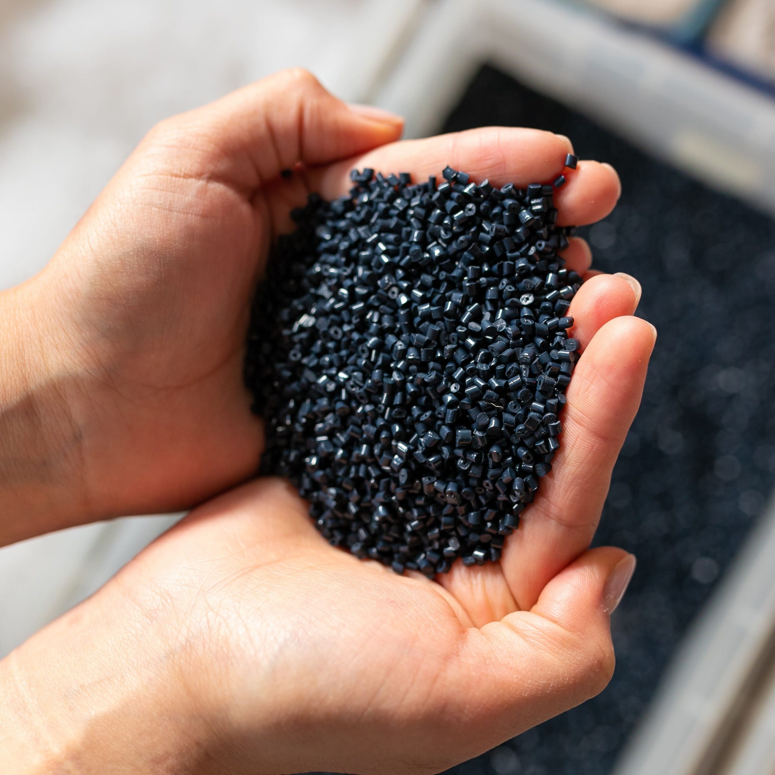 Materia prima plástica reciclada, a partir de desechos de polietileno es convertida en pellets de altísima calidad.